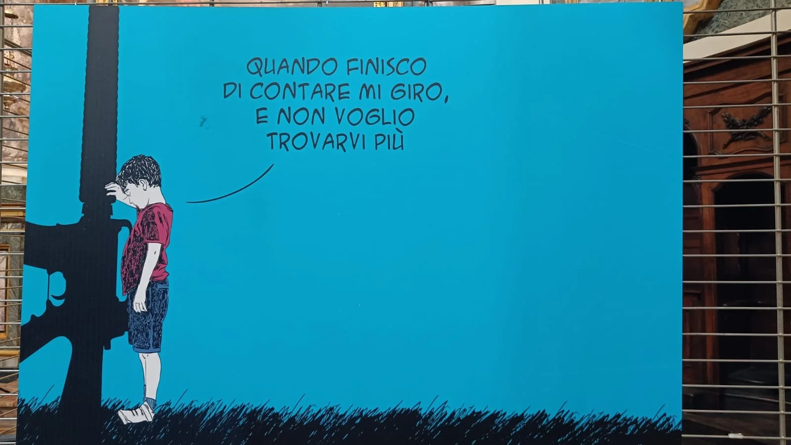 Il primo incontro della mattinata per C’é Campo, “Bere al proprio pozzo - Lo spirito della missione” si è svolto nella chiesa S. Filippo Neri, dove erano esposte varie vignette raffiguranti riflessioni sulla realtà della guerra, semplici ma profonde. All’osservazione di queste immagini è seguito l’intervento della teologa Antonietta Potente.