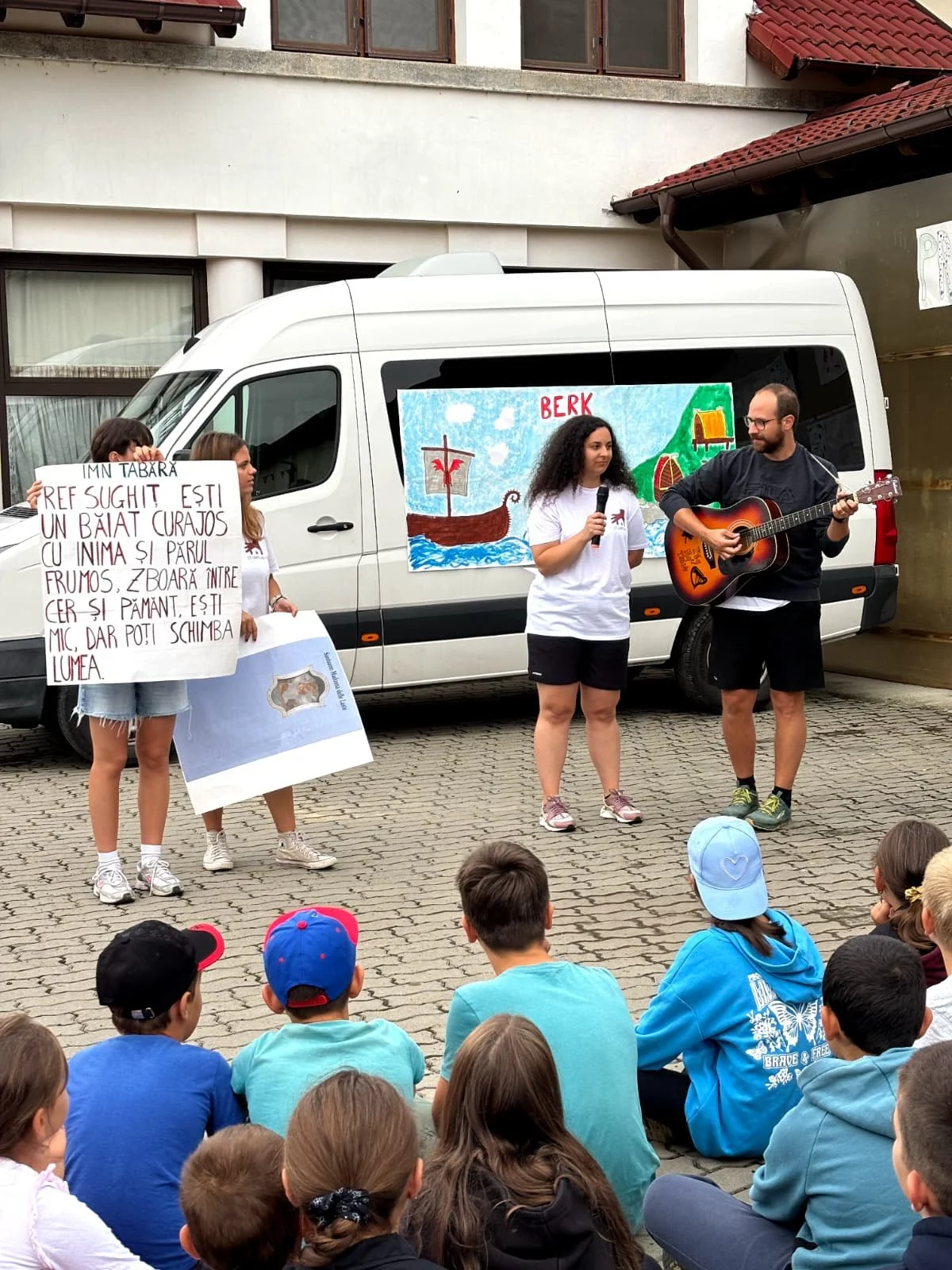 La prima sera infatti, ci è stato proposto di scrivere ognuno una parola che conteneva un desiderio per questa esperienza e ogni giorno ne pescavamo una da tenere a mente. Questo è stato un modo per aiutarci a non perdere il senso di ciò che stavamo facendo durante le giornate impegnative che ci aspettavano e un’occasione per ripensare la sera a quello che si era vissuto. Prima dell’inizio della tabara vera e propria, abbiamo passato i giorni che avevamo a disposizione a organizzare e a conoscerci tra di noi, dal momento che c’erano sia animatori italiani che rumeni. A livello organizzativo ci siamo divisi in tre gruppi, che avrebbero poi seguito i bambini divisi per fasce di età. In ogni gruppo eravamo mescolati italiani e rumeni, in modo da rendere possibile per ognuno di noi italiani avere qualcuno di riferimento che spiegasse i giochi e ci aiutasse nel caso dovessimo parlare con un bambino e che loro avessero un supporto a livello più pratico nel gioco o nell’organizzazione dei materiali. Fortunatamente siamo riusciti a comunicare bene tra noi grazie all’inglese e alle traduzioni degli animatori più grandi
